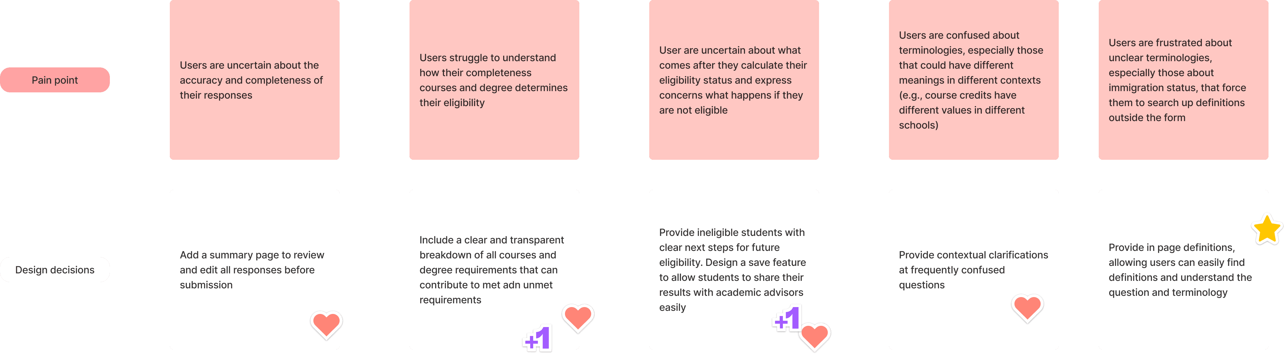 In addition the synthesis, I created a user journey map to visualize the form flow experience. This made it easier to understand user pain points and the underlying reasons within the journey.