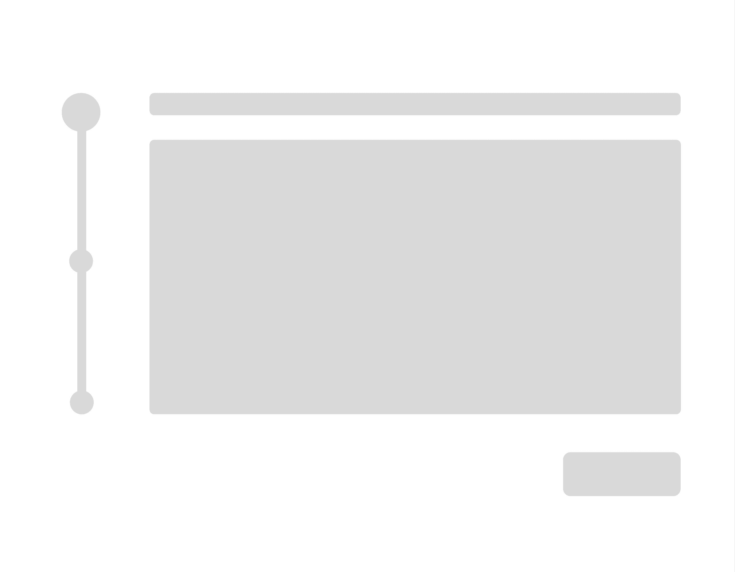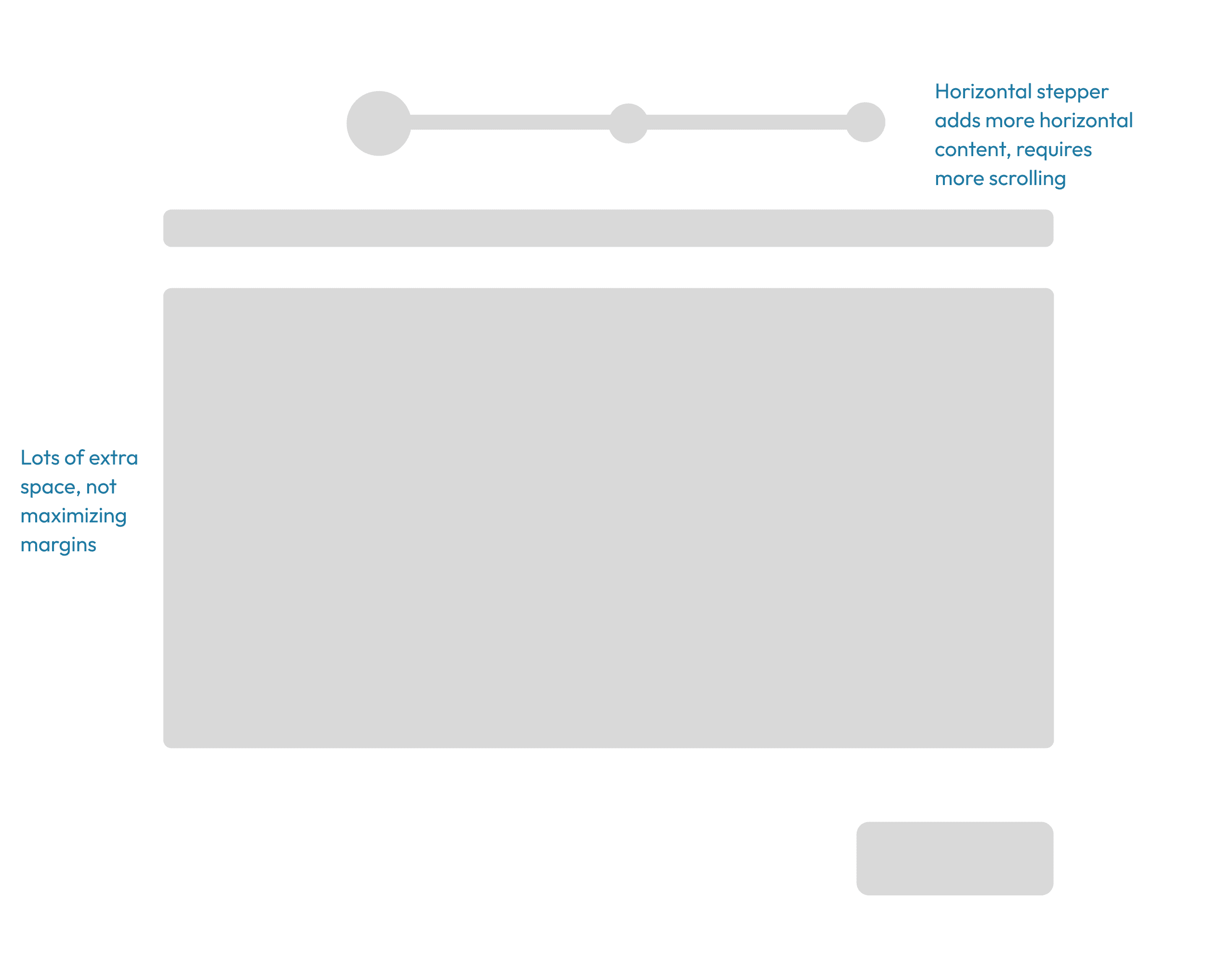To show users progress through the multi-section form, we added a stepper but debated between a horizontal and vertical steppers. Horizontal steppers work well for long-forms with lots of scrolling and vertical for forms with lots of space on the sides of the screen, optimizing space. Vertical also aligns with users' natural reading so we ultimately decided on a vertical stepper.