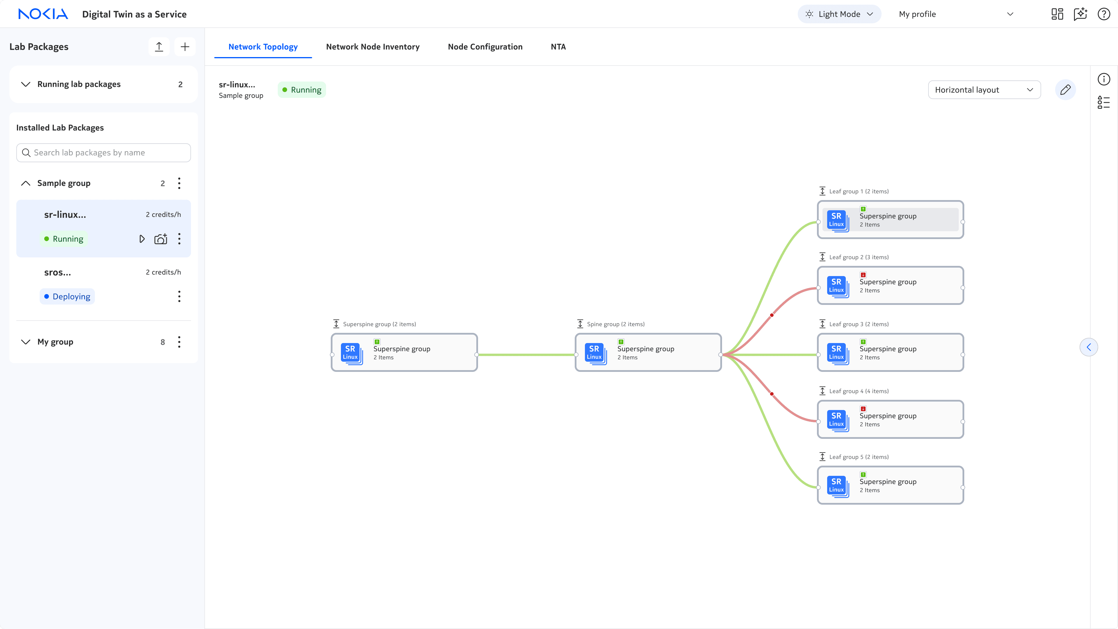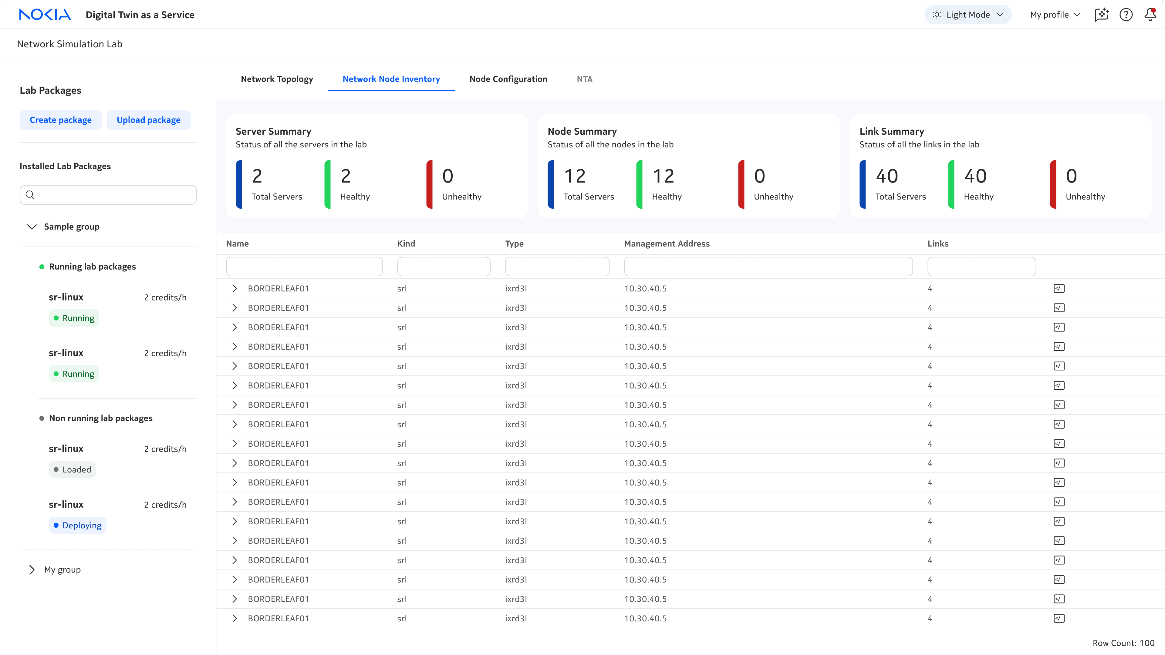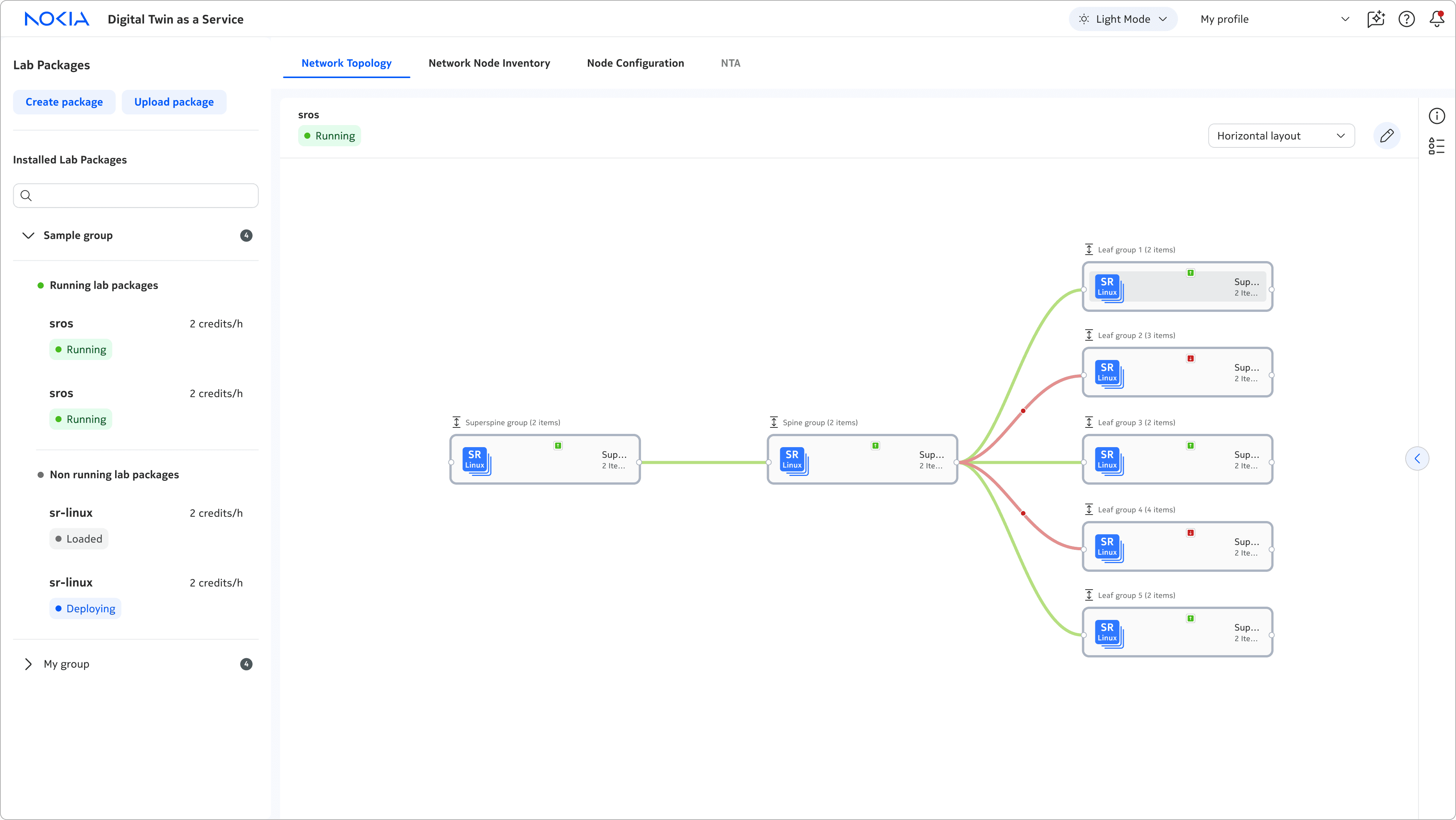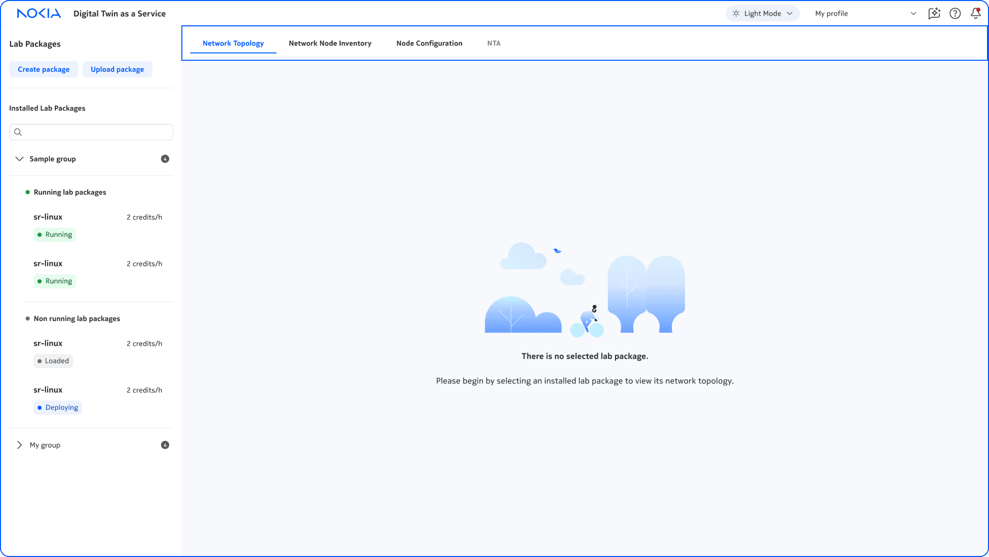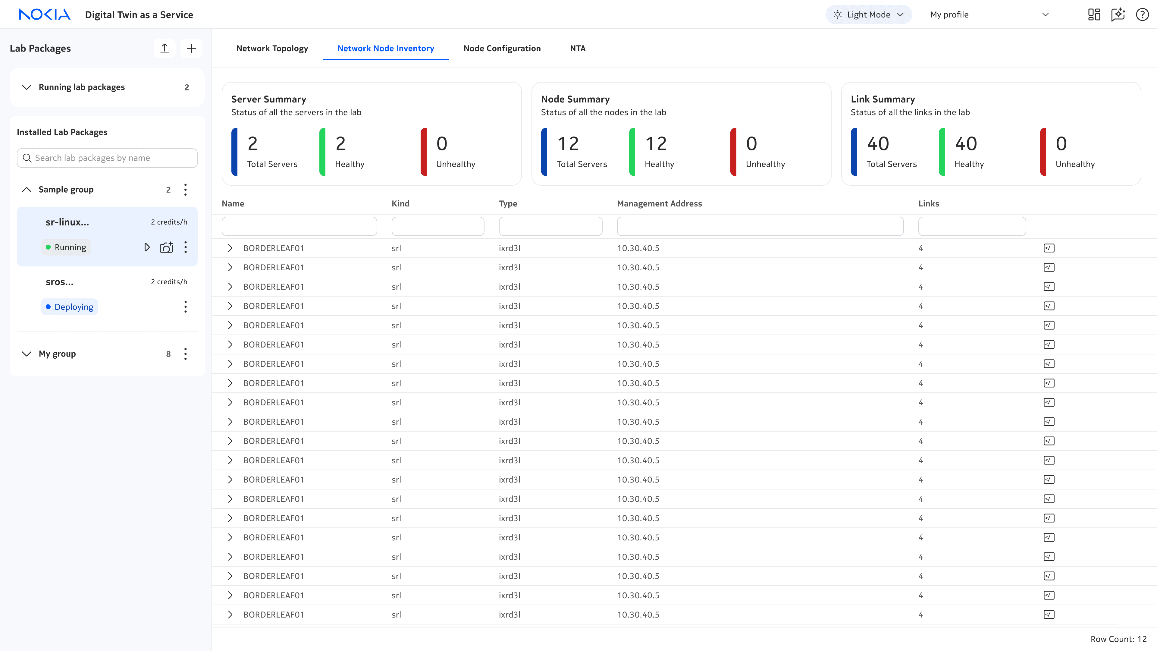 The NTA (Network Testing Automation) page was designed around the network testing mental model. This starts with selecting a lab package and test plan, then running and monitoring the test and results.