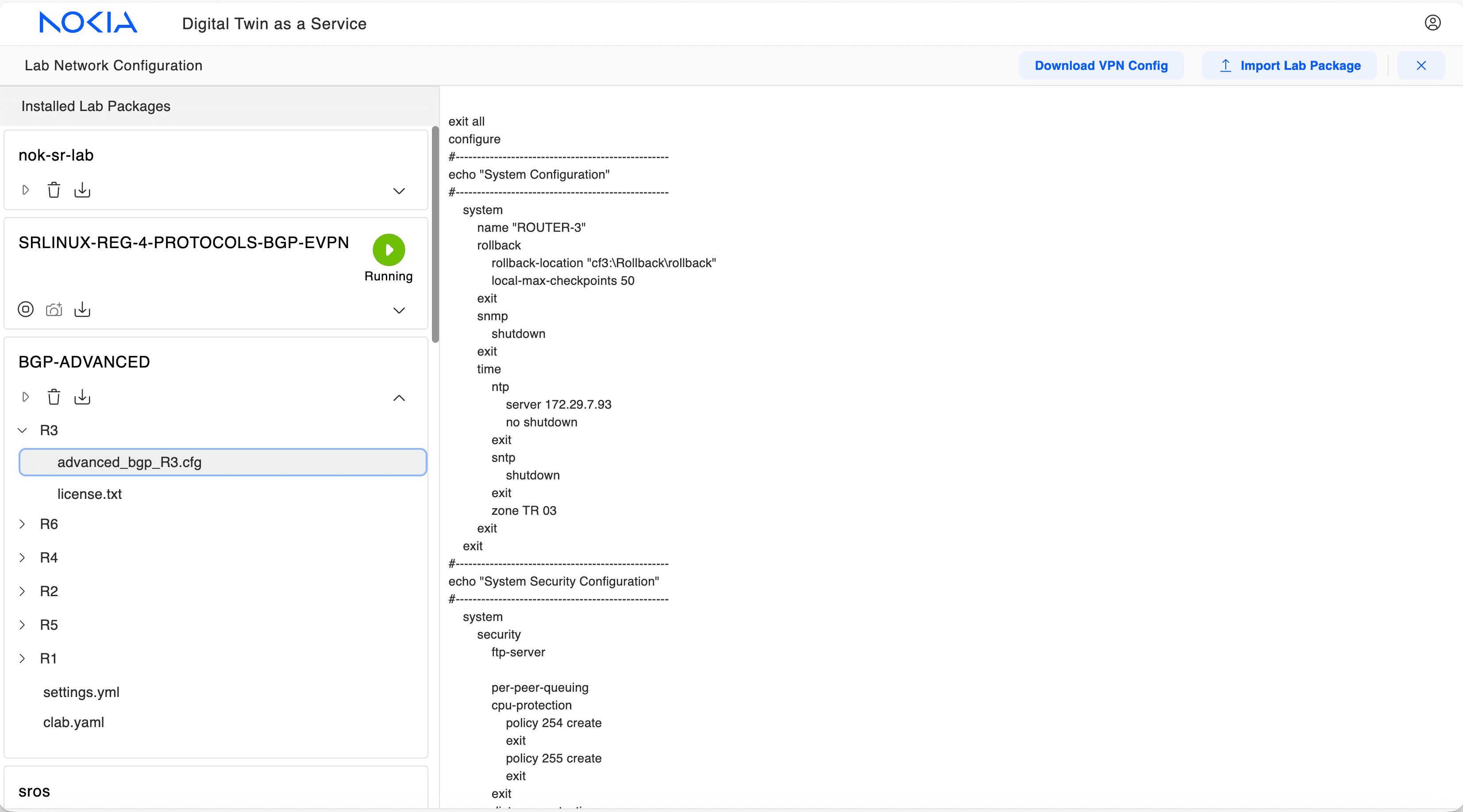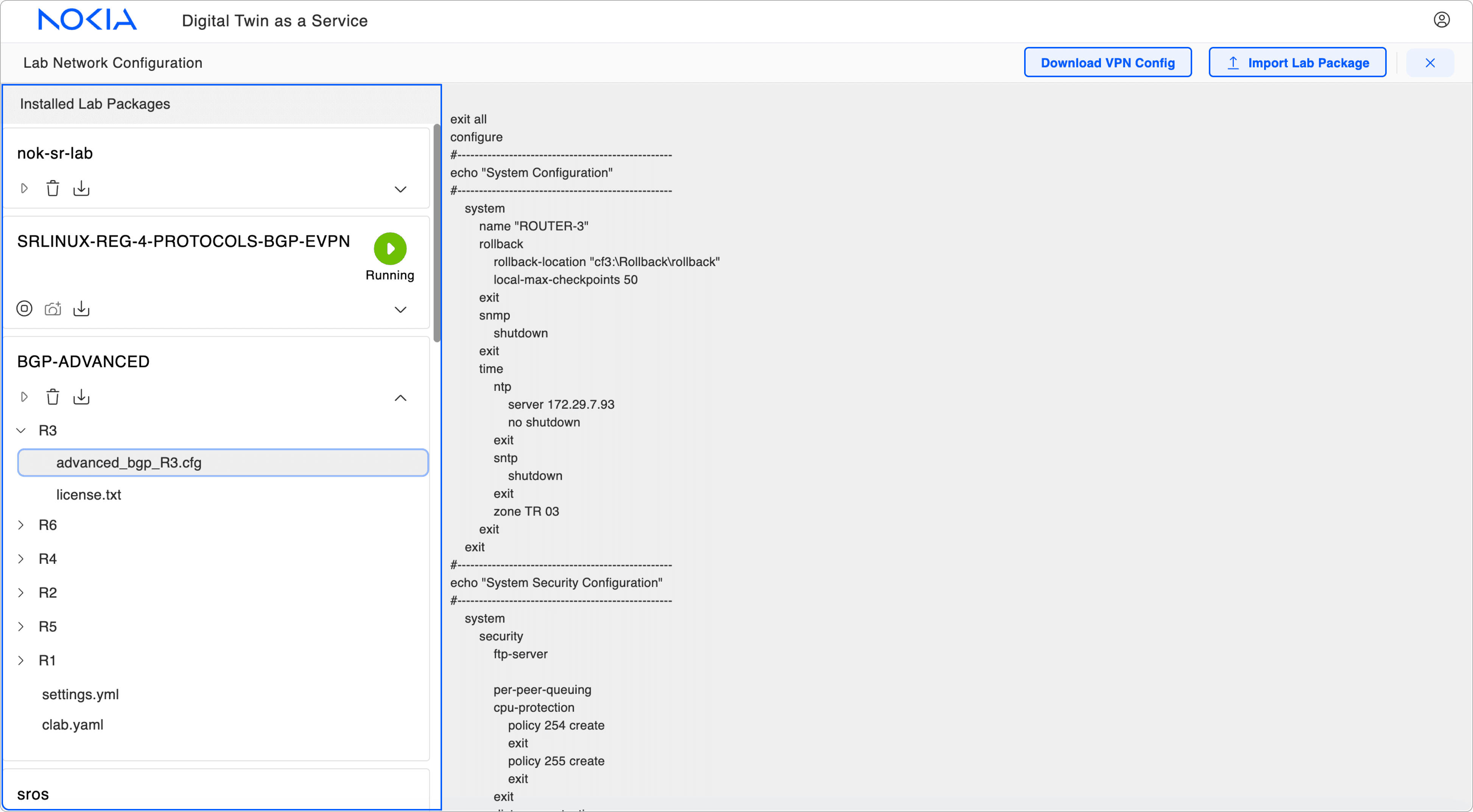 A digital twin works by creating a lab package containing a virtual replica of the devices in a network. This way, engineers can build, manage, monitor, and test networks on this virtual replica rather than the real one.