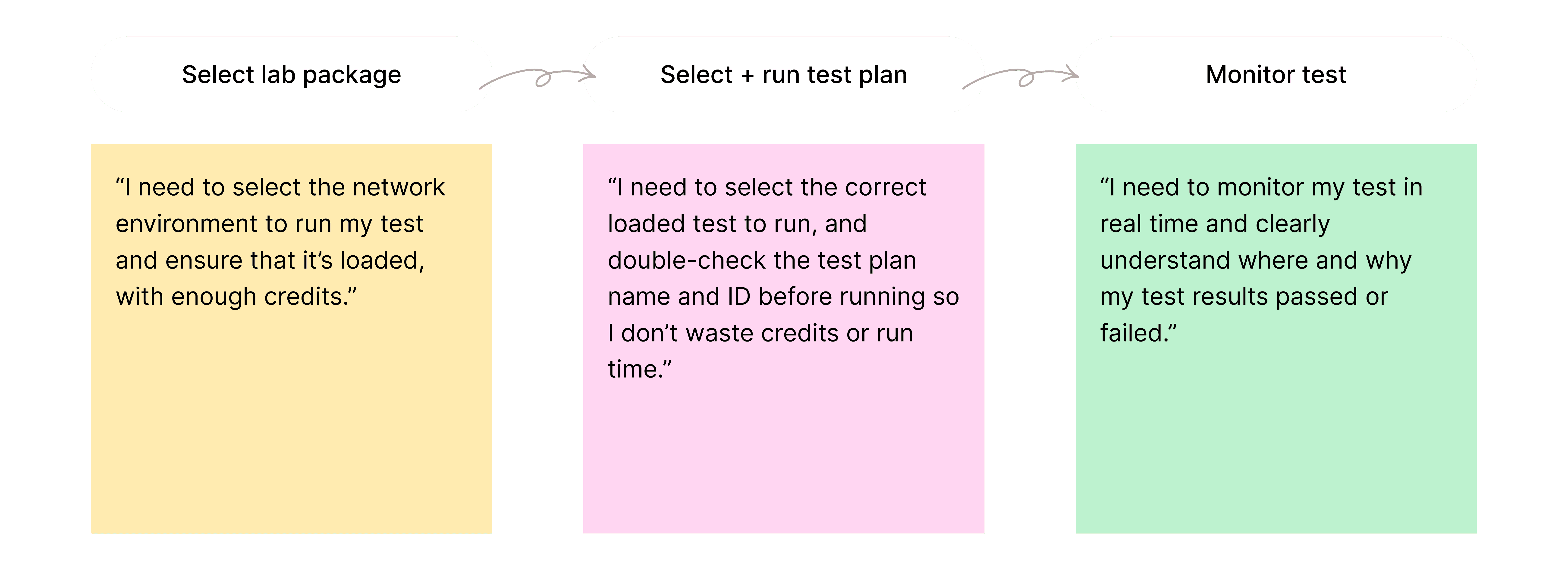 Worked with devs to surface more useful post-run test data in the panel (success!). We were able to break down the test results into phases → richer context and results